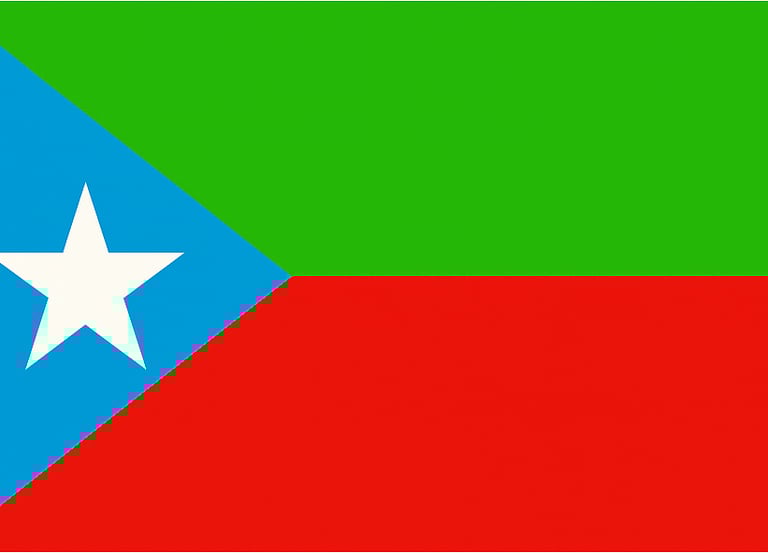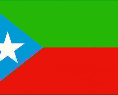 Baluchistan or Balochistan flag in Baluchistan style. Ratio two by three. Top green (#60DD49). Bottom red (#EF2B2D). Hoist equilateral triangle blue (#00BFFF). Centered white five point star (#FFFFFF), diameter 1.6 units, pointing up. Clean flat colors and geometric accuracy.